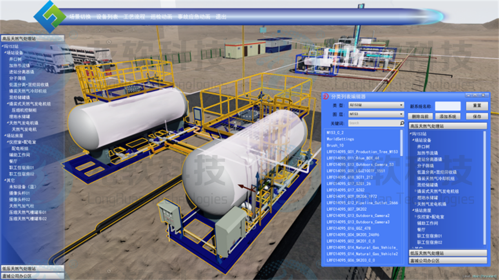 (6)在三維場景中進行日常生產(chǎn)調(diào)度、安全巡檢、應(yīng)急指揮,支持油氣泄漏、氣體擴散、火災(zāi)、爆炸等事故類型的模擬演練場景設(shè)定和三維災(zāi)害場景的快速搭建,實現(xiàn)多角色交互式協(xié)同應(yīng)急救援演練。